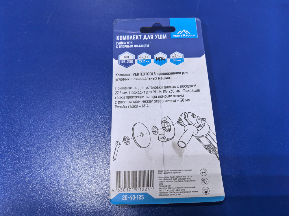 Гайка M14 с опорным фланцем - комплект для монтажа УШМ 20-40-125