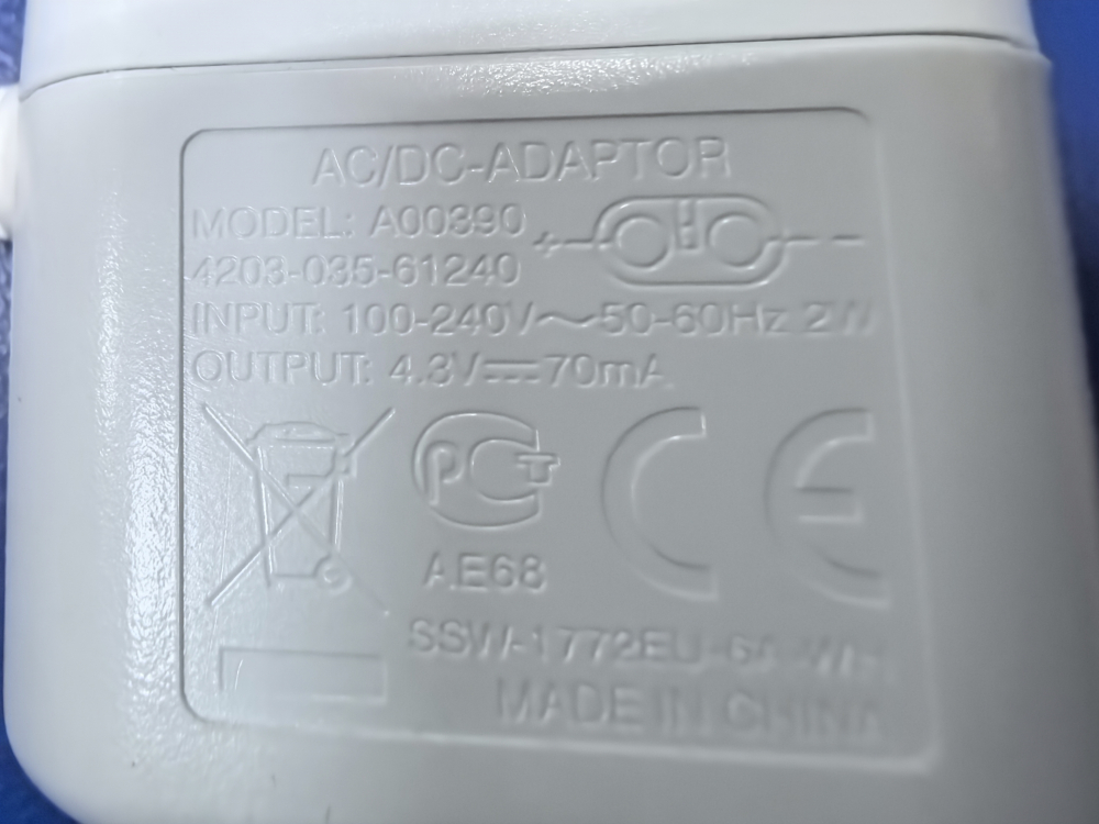 Зарядное устройство (сетевой адаптер, бл.питания A00390) 4.3V, 70mA 2,35*0,75мм для триммера Philips